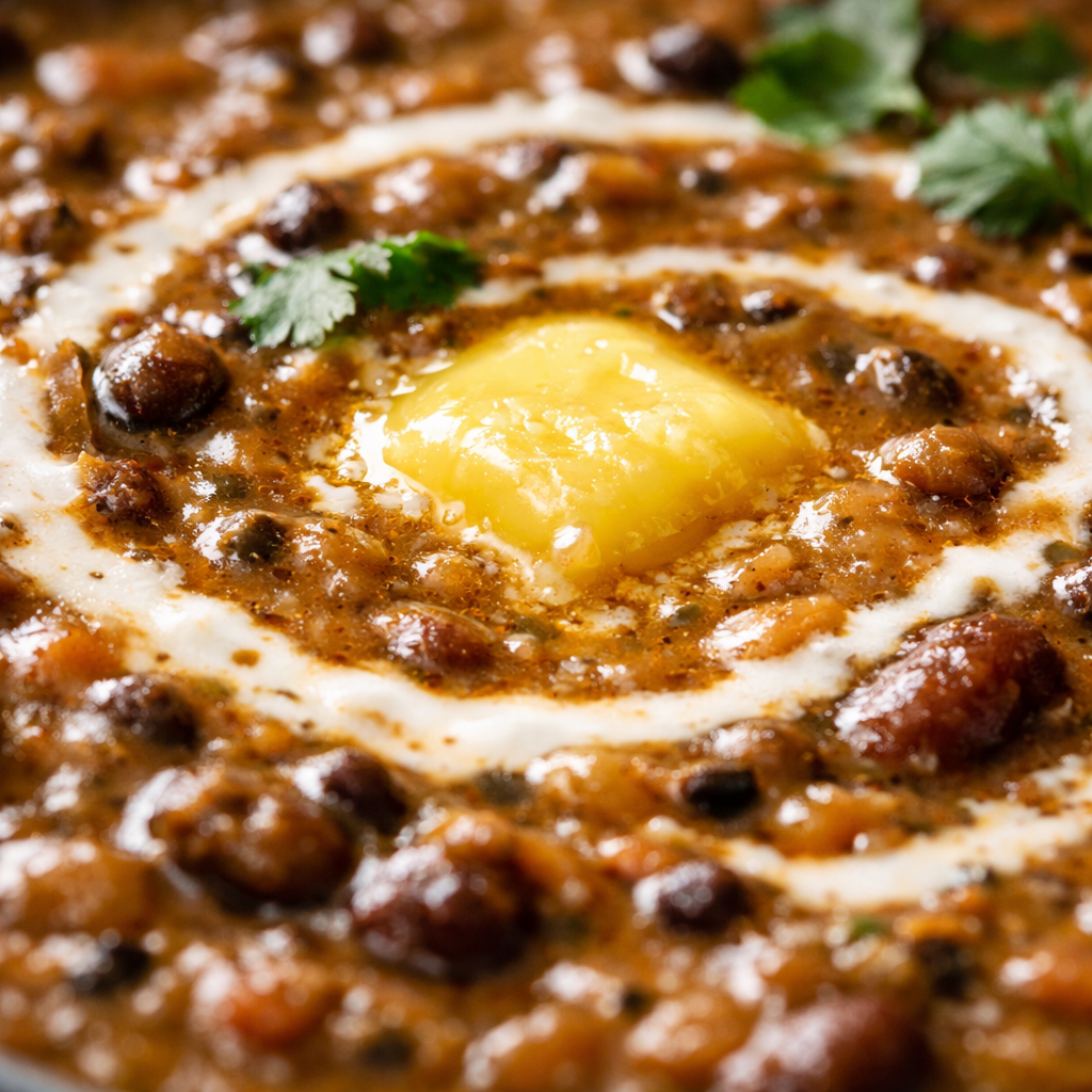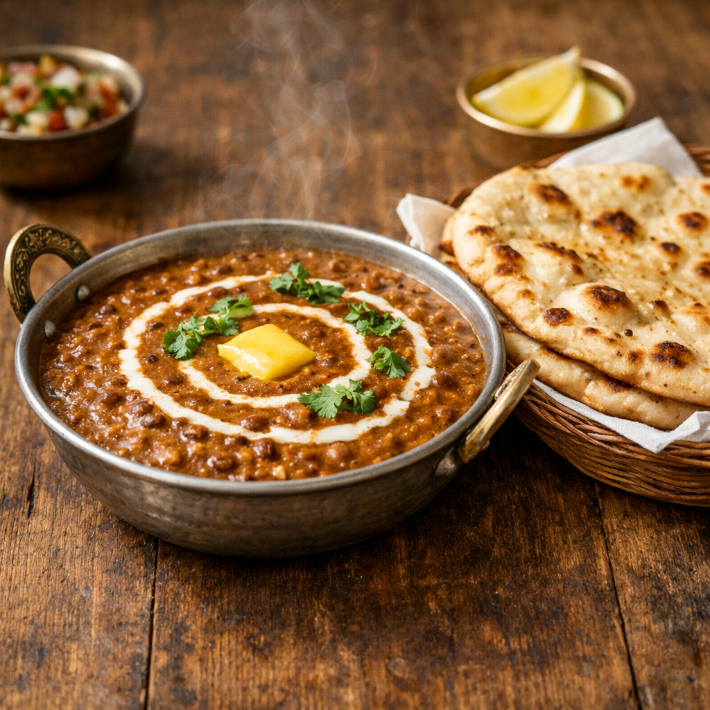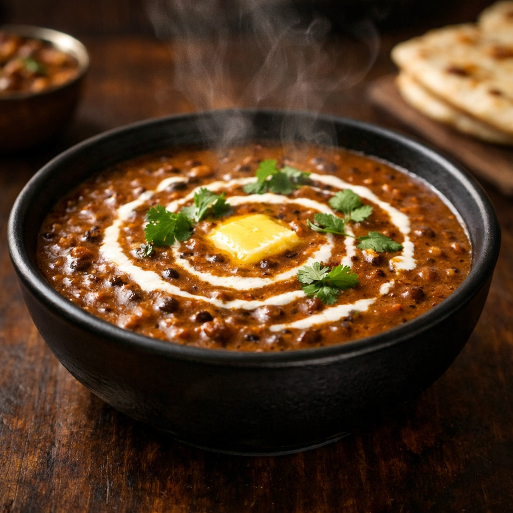 Prepared using traditional slow-cooking methods, the lentils are simmered for hours to achieve a rich and creamy consistency. This process allows the spices to infuse deeply, creating a smooth texture and a bold, layered flavour. The addition of butter and cream enhances the dish, while the slow cooking ensures that every bite is rich, aromatic, and satisfying.